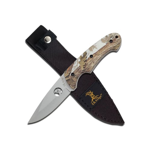 The ER-046CA Elk Ridge Fixed Blade Knife is a rugged and reliable hunting tool, designed for outdoor enthusiasts, hunters, and survivalists. With full tang construction, a matte-finish stainless steel blade, and a camouflage-coated handle, this knife ensures durability, precision, and comfort in any environment.