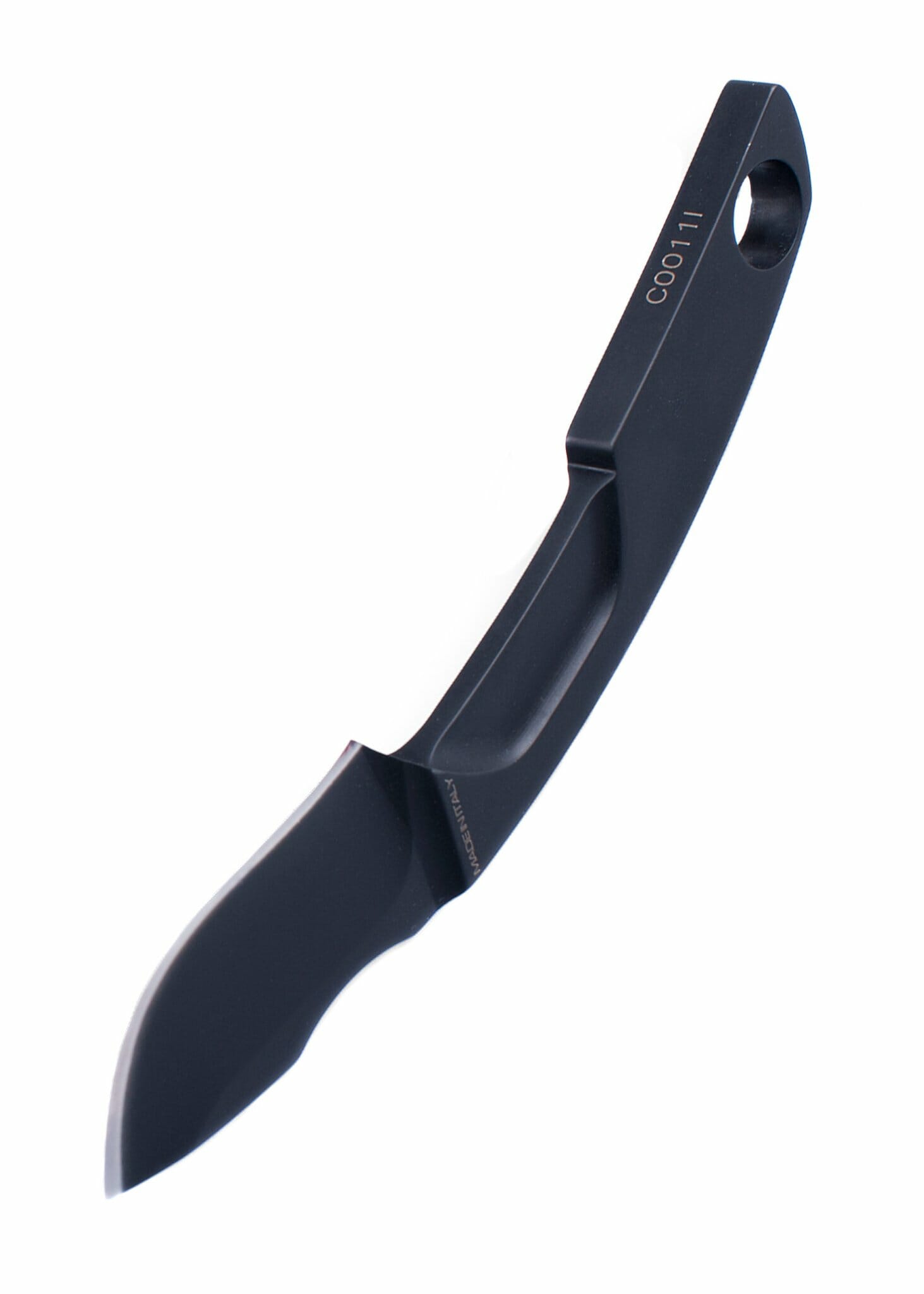 N.K.1 is a reduced-size knife is based on the SKINNER (which comes with our CULTER VENATORIUS hunting knife) and perfected to a true tactical knife. The design of the handle prevents accidental injury while drawing. A groove on the back of the blade accommodates for the user’s index finger or thumb, according to wielding style. Due to its overall construction, the N.K.1 is both capable of offense, through very effective slashing strikes, and useful for minute precision work.