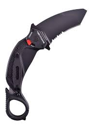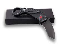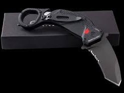 Extrema Ratio is proud to present the new development of karambit folding knife with rescue characteristics. It has been adopted by the special units of U.S.I.V.P. Principality of Monaco Police. Its name comes from the development and consultancy department of Monaco special intervention units. It comes with a standard industrial-grade cutter blade which is easily replaced, a reversable pocket clip, a glass braker placed in the finger ring. It is produced both in black and stone washed version.