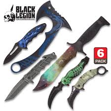 - Included in this fantasy knife set are a dragon-themed axe, a cosmic bowie knife, and a Digitech camo folding karambit