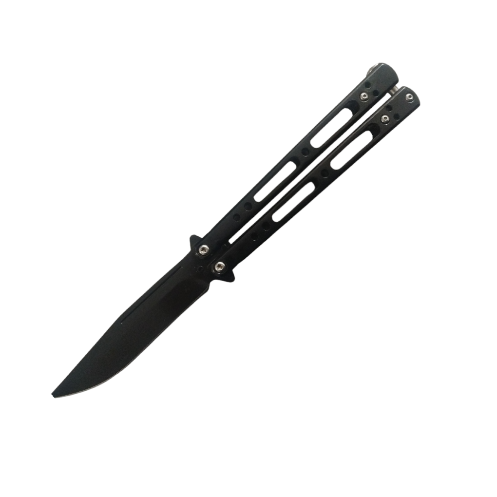This butterfly knife is a sleek and durable folding knife designed for both practical use and flipping enthusiasts.