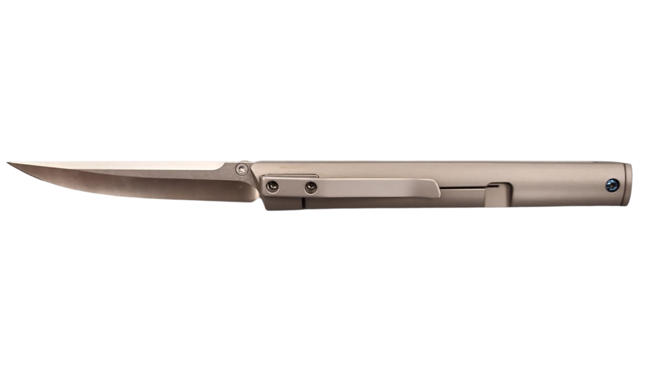 The design stands out with a minimalist grey handle paired with blue hardware, giving it a modern and slightly customised look. Coloured screws are commonly used in pocket knives to enhance aesthetics and give a more premium, personalised appearance .