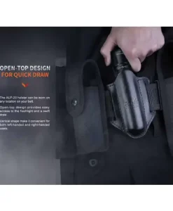 - Constructed from premium leather, this holster is wet-molded to ensure your flashlight remains in place and the open-top design allows for quick access.