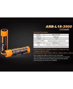 The Fenix ARB-L18-3500 is a premium, high-capacity 18650 Li-ion rechargeable battery, engineered for high-drain devices that require long-lasting, stable power output. With a capacity of 3500mAh, this battery is designed to deliver exceptional performance and durability, making it an ideal power source for a wide range of demanding applications, including outdoor adventures, industrial tools, tactical gear, military-grade flashlights, and everyday carry (EDC) electronics. Whether you’re navigating rugged terrain, working in extreme environments, or simply relying on your flashlight for daily use, the ARB-L18-3500 offers reliable, consistent energy delivery that ensures your devices perform at their best when it matters most.