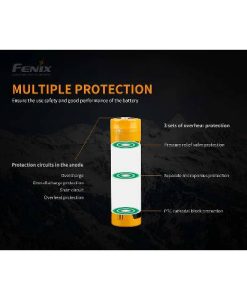 The Fenix ARB-L21-5000 is a high-capacity 21700 Li-ion rechargeable battery designed for extended power and runtime. This battery features advanced protection circuitry to prevent short circuits, overcharging, and overheating. Additionally, it includes pressure relief vents to ensure safety in case of an internal short circuit. With a capacity of up to 5000mAh and 500 charging cycles, this battery is a robust choice for high-performance Fenix flashlights.