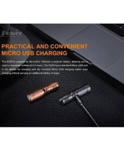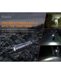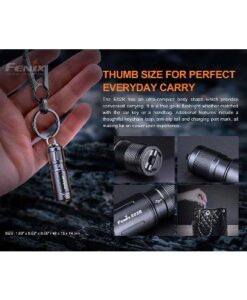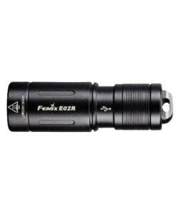The Fenix E02R Flashlight is a rechargeable flashlight that can emit up to 200 lumens from its built-in 120mAh li-polymer battery. Fully rechargeable via a built in micro-USB charging port, this flashlight has a maximum runtime of 6 hours and 30 minutes. Access two brightness levels with a quick twist of the head. At less than 2” long and just over a half of an inch round, this little flashlight is built tough with an IP68 dustproof and waterproof rating. Super small and compact, this keychain flashlight is a great choice for every day carry.