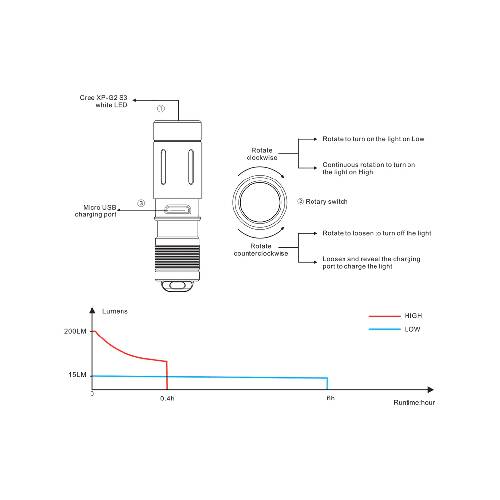 - Cree XP-G2 S3 white LED, with a lifespan of 50,000 hours.