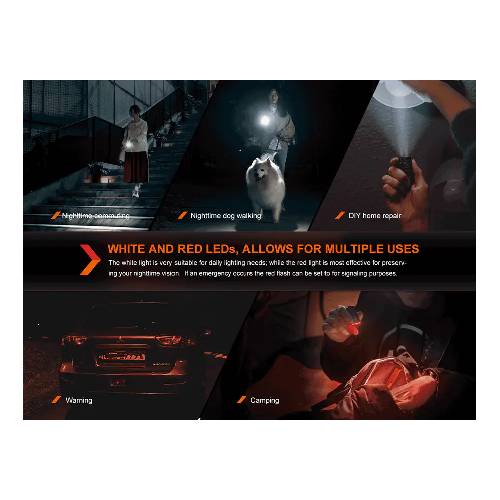 Super small and compact, the Fenix E03R V2.0 rechargeable keychain flashlight features upgraded performance with an extremely bright maximum 500 lumens. A single switch operates on/off and seven lighting modes, including four brightness levels, red light, red flashing, and a pulse light. The large battery level indicator lets you know when it’s time to recharge the built-in battery via the USB Type-C charging port. This flashlight is built tough because of its all-metal construction and IP66 rating, making it heavy splashproof, and dustproof. Smaller than your key fob, the Fenix E03R V2.0 flashlight will be a welcomed addition to your keychain.