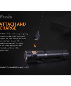The Fenix E30R rechargeable flashlight is a hi-performance flashlight in a compact, everyday carry design. Less than 4″ long, this flashlight can blast a maximum 1600 lumens a distance of 666ft (203m). Powered by an included 18650 (3400mAh) Li-ion battery, this E30R is fully rechargeable via its magnetic charging port. Convenient side switch activates all lighting modes and includes a battery level indicator—helping you always know the status of your battery. Waterproof and dustproof, the Fenix E30R will be your go-to everyday carry flashlight.