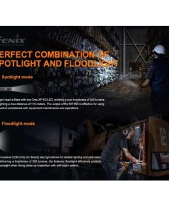 - Two Cree XP-E2 LEDs and COB floodlight source with a lifespan of 50,000 hours