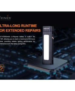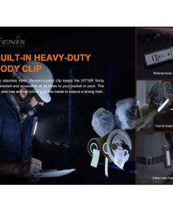 The Fenix WT16R magnetic flashlight is a great all-purpose work light. A single switch allows you to choose between three brightness levels of a forward facing spotlight, two floodlight levels and a yellow flash. Magnets on the tail and back let you attach the light to most metal surfaces for hands-free lighting. The sturdy clip allows you to attach the light to your belt, pocket or pack. Check the built-in battery’s status with the battery level indicator and recharge it via the USB type-C charging port. Quality built with an IP66 rated dustproof and heavy rain resistant, the Fenix WT16R Rechargeable Magnetic Flashlight will be your trusted tool in the field or on the job.