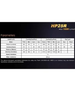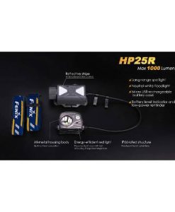 No more having to shuffle between your spotlight and floodlight headlamp, the new Fenix HP25R rechargeable headlamp has it all. Delivering up to 1000 lumens, the HP25R is one of the brightest headlamps in its class. With two beam options, the Fenix HP25R allows you to see afar with the cool white LED, while the neutral white LED provides high brightness, detailed contrast, and visibility for both far and close surroundings. The neutral white wide-angle beam is especially effective for cutting through fog. Forget about constantly changing batteries; the Fenix HP25R uses rechargeable 18650 batteries that can be charged directly inside the headlamp with a Micro-USB cable. It can also run on two CR123A batteries. Enjoy up to 1.5 hours of runtime on Turbo mode and experience impressive performance in any environment.