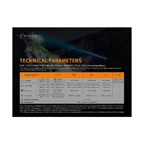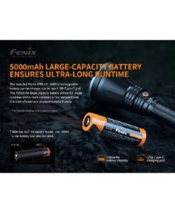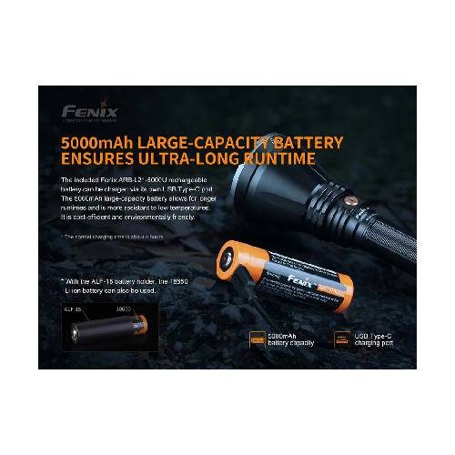 Inside, a high-performance Luminus SFT40 LED delivers up to 50,000 hours of reliable illumination. The included Fenix ARB-L21-5000U USB-C rechargeable 21700 Li-ion battery fuels a staggering runtime—up to 61 hours on low—so you can spend nights afield without hunting for a charger. A built-in battery-level indicator and low-voltage warning keep you informed, while reverse-polarity protection guards against improper installation.
