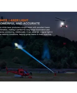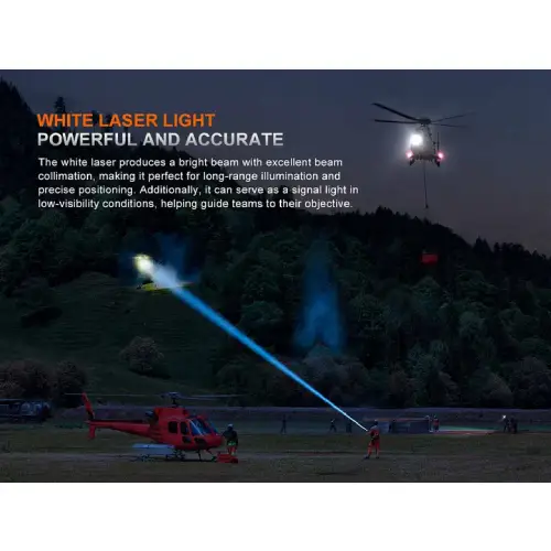 - Combined white laser and floodlight for both long-range and close-up illumination.