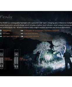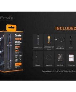 Carrying the PD36R is a breeze with the innovative two-way body clip that attaches to backpacks, belts, and clothes alike. Upon purchasing the Fenix PD36R Tactical rechargeable flashlight, you will receive a durable holster, lanyard, O-ring, battery, charging cable, and user manual.