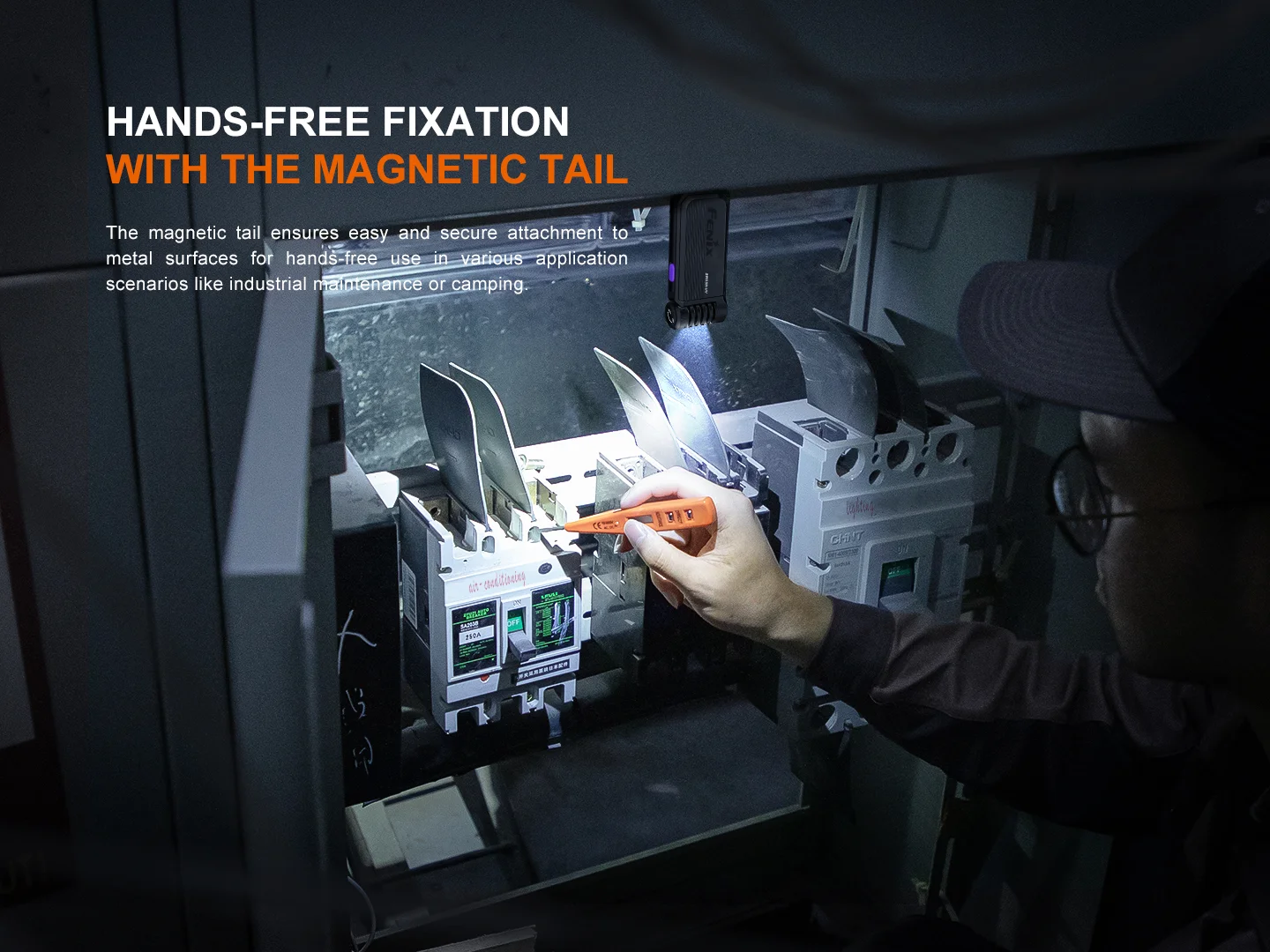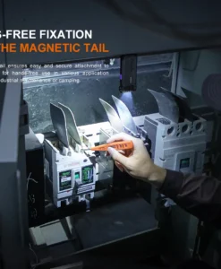 The light tail features a strong magnet for hands-free use on magnetic surfaces.