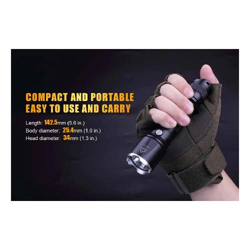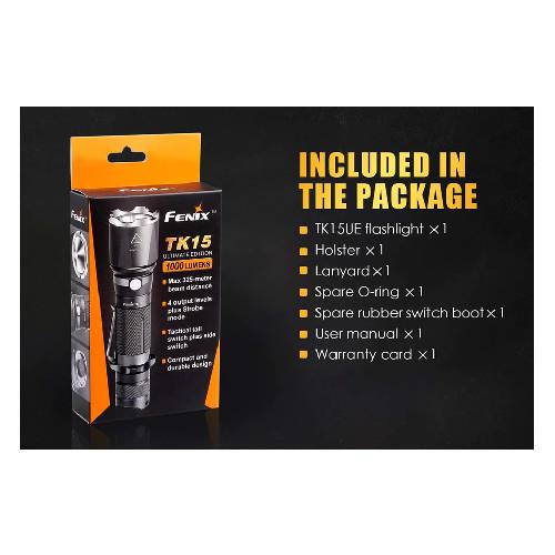 The Fenix TK15UE defines extreme ruggedness. This flashlight employs the new CREE XP-L HI V3 LED technology, allowing it to project an impressive beam distance of over 1000 feet (325 meters) and deliver a maximum output of 1000 lumens. With an impact-resistant strike face bezel, the TK15UE is ready for heavy-duty action.