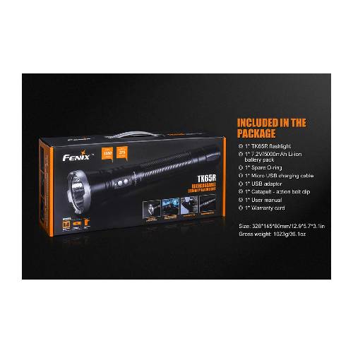 With its rechargeable battery system, the TK65R offers the convenience of extended use without the need for frequent battery changes, while its user-friendly interface allows for easy operation and mode selection. Whether for professional or personal use, the Fenix TK65R combines advanced lighting technology with rugged durability to meet the highest standards of performance and reliability.