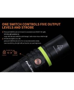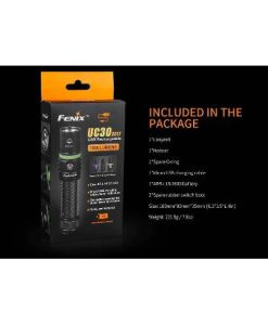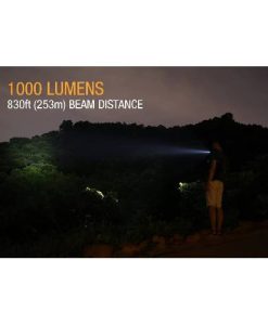The newly upgraded Fenix UC30 rechargeable flashlight is fitted with a Cree XP-L HI LED which also delivers a maximum output of 1000 lumens and a beam distance of 830ft (253m) all powered by one included rechargeable 18650 Li-ion battery.