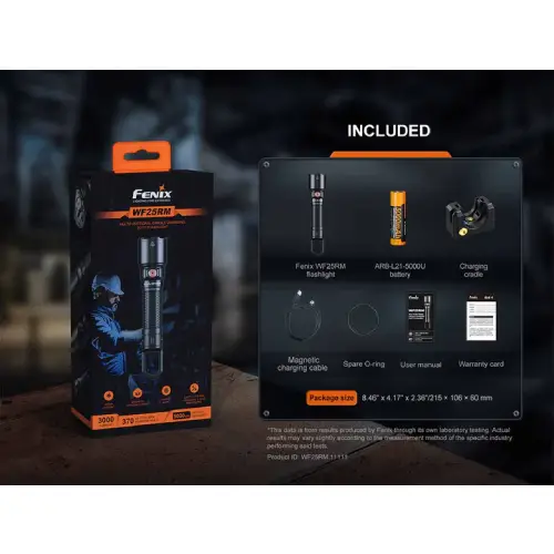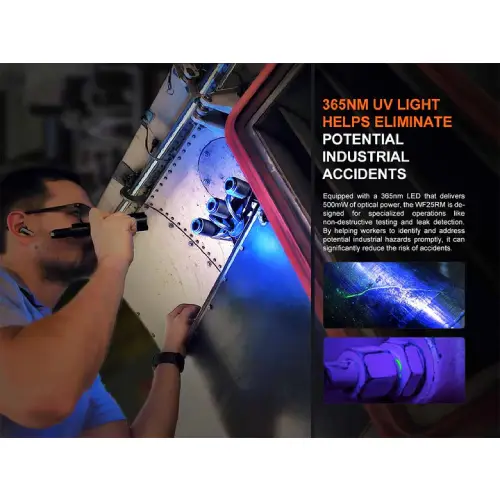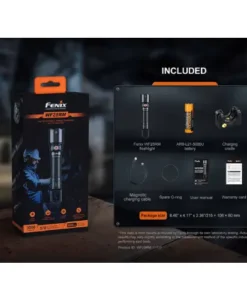 The Fenix WF25RM Work Flashlight is engineered for professionals who need dependable, high-performance lighting. Offering an impressive 3000-lumen burst mode activated by holding the side switch for two seconds, it provides instant illumination with a beam that reaches 1214ft (370m). The magnetic charging dock ensures your flashlight is always fully powered and ready for action. This versatile work flashlight features a 365nm UV light for industrial applications, a proximity sensor for safe operation, and a tail clip for hands-free convenience. With its rugged aluminum alloy build, IP68 waterproof rating, and compact size, the Fenix WF25RM is the ultimate work companion for any demanding job.