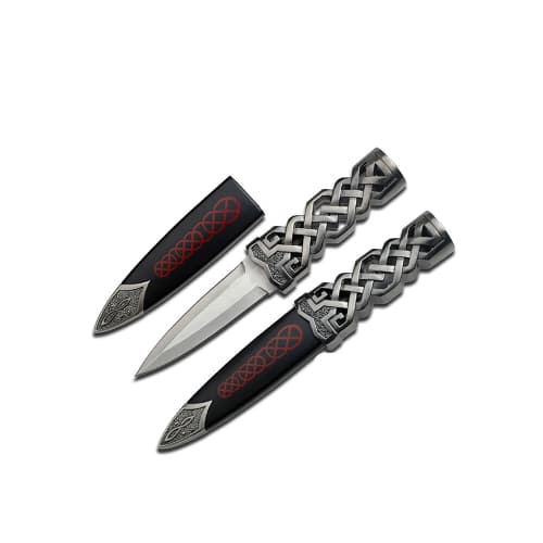 - Celtic-style aluminum handle with intricate detailing