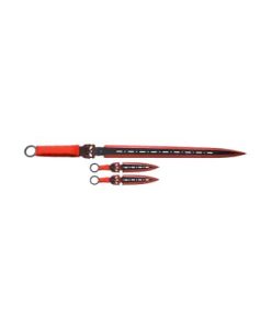The FMT-058RD Fantasy Master Machete Red is a bold and powerful cutting tool, designed for outdoor use, survival situations, and collectors. Featuring a full-tang 17.25-inch stainless steel blade with a striking black and red finish, this machete combines durability with eye-catching aesthetics. The cord-wrapped handle of FMT-058RD ensures a secure and comfortable grip, while the included nylon sheath allows for safe storage and easy carry.