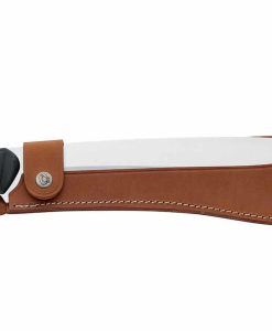 The FOX Pathfinder FX-679 is a robust and tactical fixed blade knife crafted for survival, outdoor, and military applications. Engineered with a 13.77″ Buderus Nitro-B stainless steel blade, it offers exceptional edge retention and corrosion resistance. The full-tang design, paired with a comfortable FRN and rubber overmold handle, ensures a secure grip even in wet conditions. A premium leather sheath is included for reliable and stylish carry. Whether in the field or forest, the FOX Pathfinder delivers the performance you can trust.