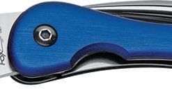 FOXFox Sailing Knife. 4 1/8″ closed linerlock. 2 7/8″ partially serrated 440C stainless blade with shackle slot and marlinspike. Hardened to HRC 57-59. Blue anodized T6-6061 aluminum handles. Lanyard hole with blue and yellow lanyard. Lanyard colors may vary.