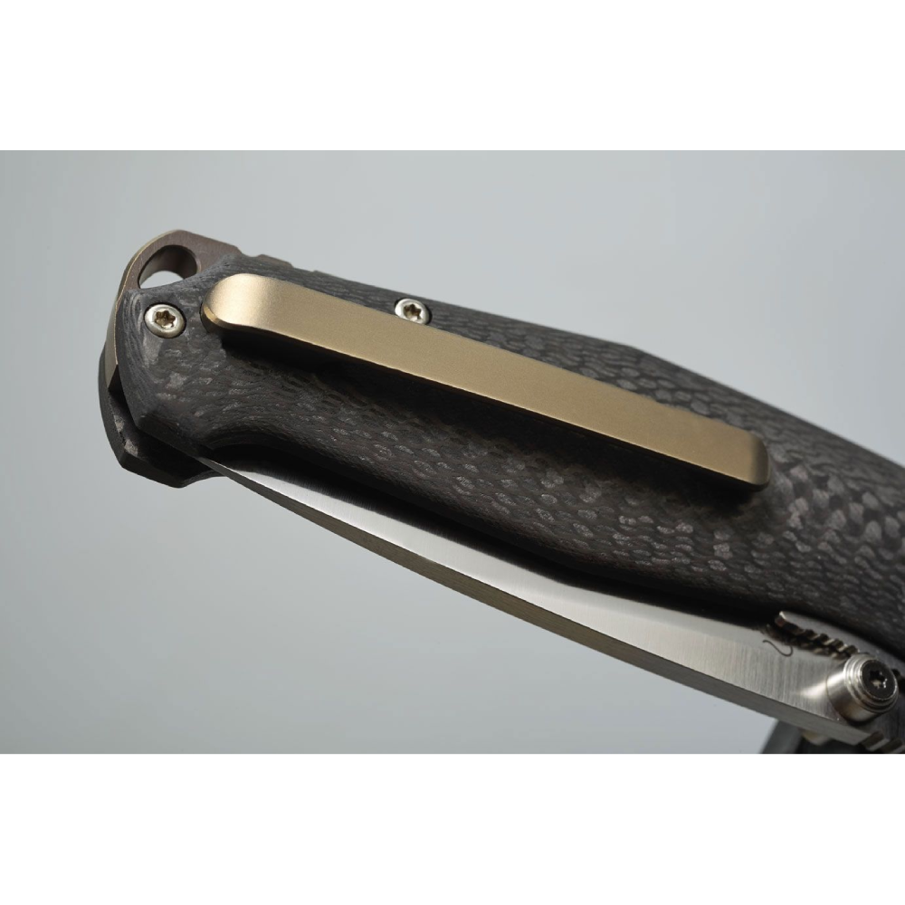 The FOX TUR Folder with carbon fiber handle is a premium folding knife crafted by Jesper Voxnaes. Featuring a satin-finished Elmax stainless steel blade, this knife delivers exceptional cutting performance and edge retention. Its carbon fiber handle ensures lightweight comfort and durability, making it an excellent choice for everyday carry and tactical use.