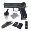 The P-430 CO2-powered air pistol shoots both.177-caliber pellets and BBs at 495 feet per second. This pistol comes with a pellet clip that holds 16 rounds (each end of the magazine features a rotary clip holding eight pellets each).
