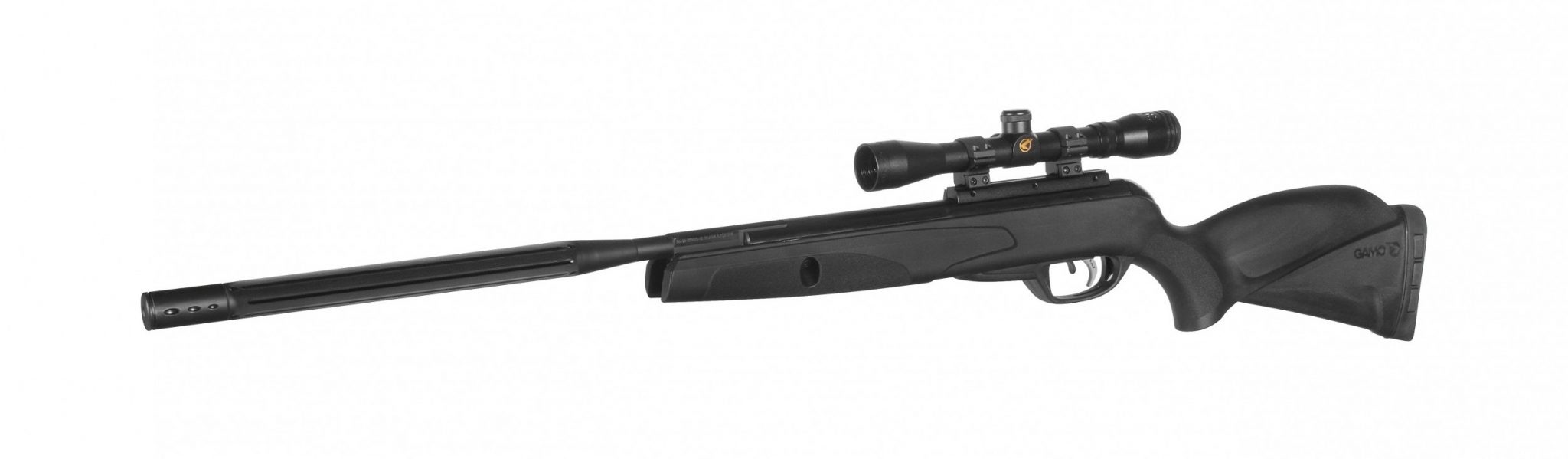 This model lacks traditional sighting elements but includes a Gamo 4x32WR telescopic scope for enhanced targeting precision.