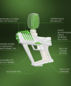 Engineered for both beginners and seasoned players, the Surge Gel Blaster offers versatile gameplay with automatic and single-firing modes, firing 10 gellets per second at an impressive 175 fps.
