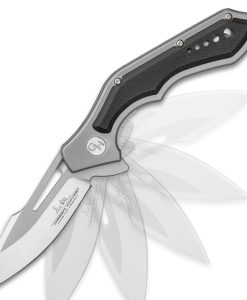 The Hibben Hurricane Pocket Knife showcases Gil Hibben’s extraordinary talent for marrying attractive form and absolute function in his incredible designs. The pocket knife has a 3 1/16” sharp, 7Cr17 stainless steel blade with a satin finish and a flipper. It’s constructed of precision CNC machined parts with tight tolerances and featuring a glass-smooth ball bearing blade pivot mechanism. The handle is CNC machined 6061 aircraft aluminum with a satin finish, a grey anodized coating and has black G10 handle scale accents. The pocket knife is 5”, when closed, and has a black coated stainless steel pocket clip with the iconic Hibben Knives logo laser etched in white. If you’re looking for an exceptional everyday carry pocket knife, this Gil Hibben masterpiece is exactly what you’re looking for!