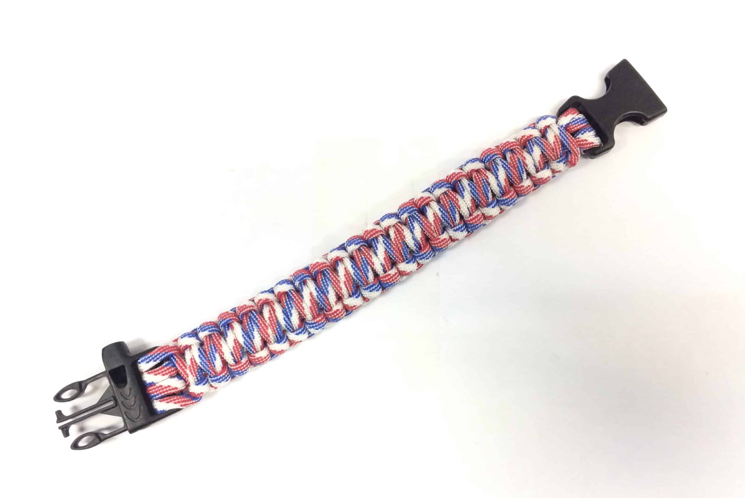 HAND BRACELET PARACORD 25CM – WHITE/RED/BLUE