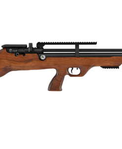 - Ambidextrous bullpup wooden stock. Moreover, it has a Picatinny rail beneath the forearm.