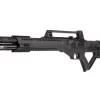 Ambidextrous bullpup wooden stock. Moreover, it has a Picatinny rail beneath the forearm.