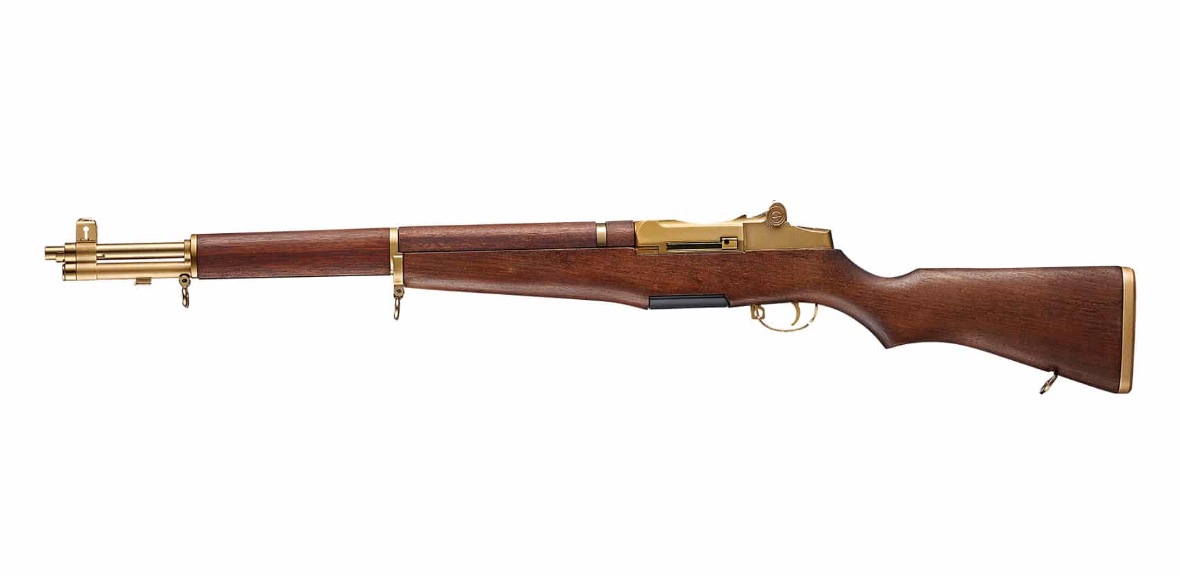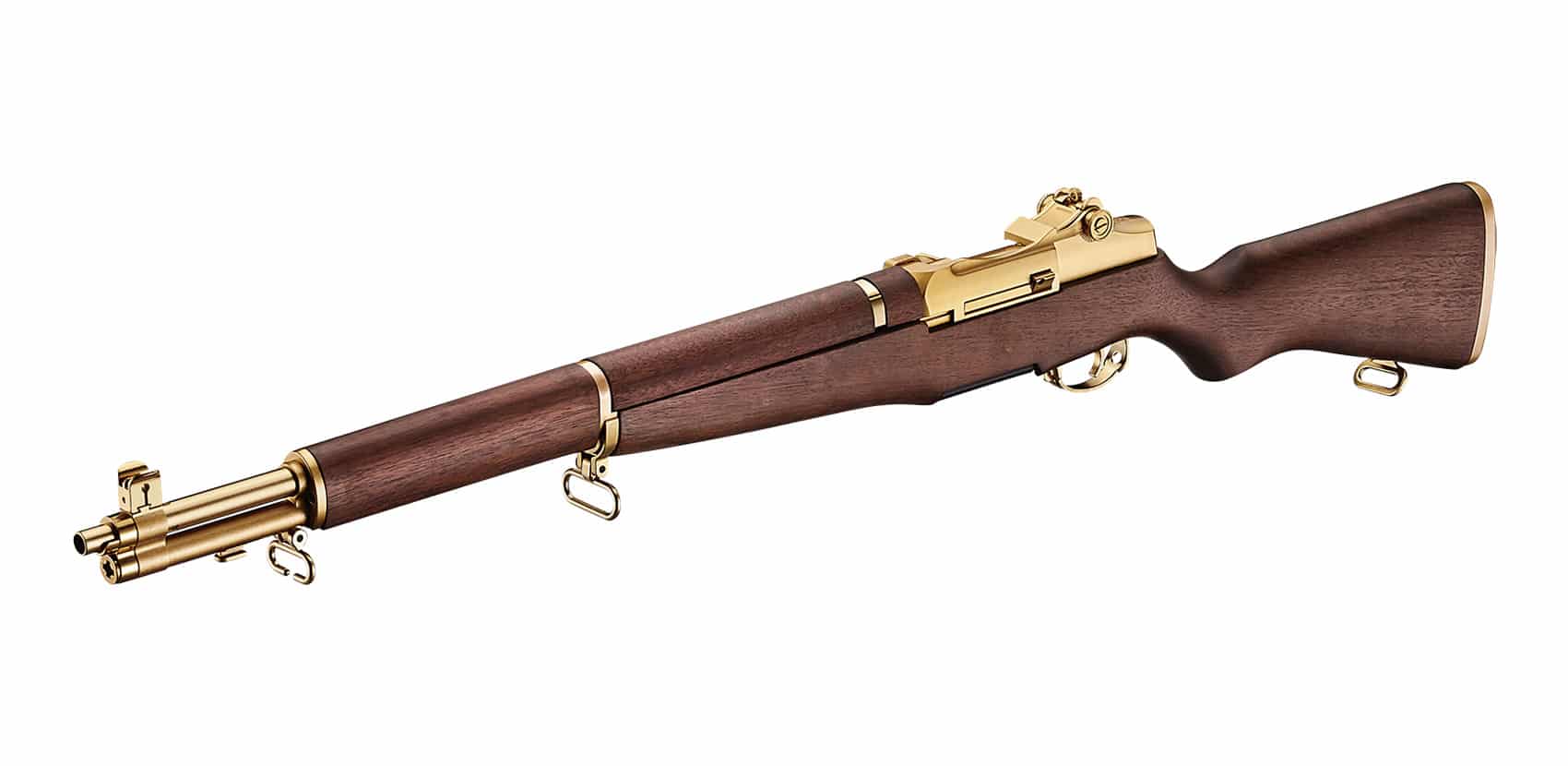 In remembrance of the 70th anniversary of the end of WWII, ICS has launched a special limited edition M1 Garand rifle. This version has a unique golden receiver, a classic symbol of elegance combined with a real leather sling.