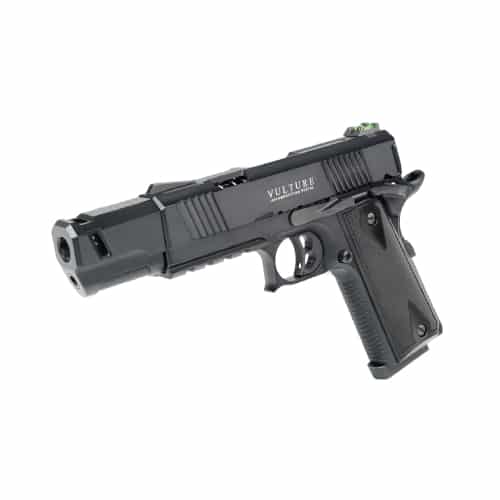 The Vulture Tactical includes a fixed barrel for improved accuracy, steel fire control components compatible with TM spec parts, and 3-dot luminous sights for enhanced visibility. It also comes with a steel 14mm CCW barrel adapter and supports an optional short-stroke slide screw for further tuning.