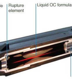 Depending on their payload the 2-shot cartridges are marked with a specific label. The patented cartridge design provides a unique self-clean mechanism cleaning from residues, so that after you fire one shot, you aren’t exposed to the residues from the fired barrel.