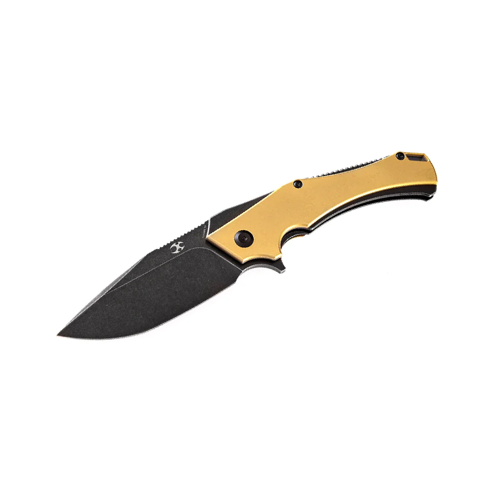 Kansept Hellx T1008B2 Folding Tactical Knife with Brass Handle Black Ticn Coated D2 Blade