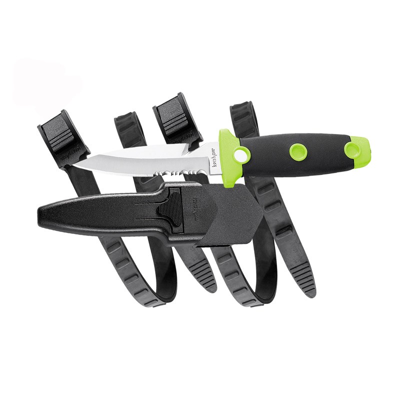 The ergonomic, rubber overmolded handle ensures a secure grip—wet or dry—while the lightweight hollow handle offers better control without bulk. For rapid deployment, the knife comes with a quick-release, leg-mountable sheath equipped with drain holes and adjustable straps—perfect for divers, rescue teams, or tactical operators on the move.