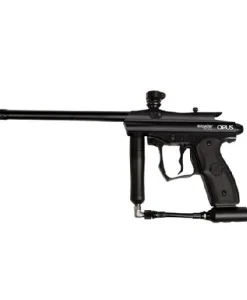 The new KingMan Spyder Opus .50 Caliber Paintball marker contains all the upgraded features of a traditional .68 caliber paintball marker BUT you get added benefits of the new .50 cal technology which allows up to 1000 shots from a 9 oz. tank (instead of 250 from a typical .68 cal) and utilizes .50 cal paintballs which cost up to 25% less than .68 caliber. Accuracy, speed and adrenaline are maximized in this AND wallet friendly system