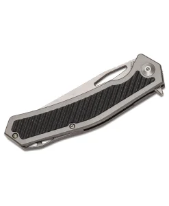 The Kizer Cutlery Ki4419A1 Sliver folding knife is a sleek, lightweight, everyday carry (EDC) knife that’s available at an affordable price. Slim and easy to fit into the busiest schedule, the Sliver is the aide that’s adept at finding the ideal place to stay hidden, appearing at the most opportune times to make the day end on a high note. This particular folder has bright orange aluminum handles milled to perfection. The grooves not only make the grip outstanding, they provide a unique design pattern. The frame is slender and easily fits in the pocket with a tip-up pocket clip. The blade, crafted from CPM-S35VN stainless steel, is a stonewashed drop point style. S35VN is a top notch steel with exceptional edge retention and wear resistance. This knife features a liner locking system, thumb studs for one hand opening, spine jimping and a lanyard hole. Kizer’s sleek design is complemented by the first-rate components they use.