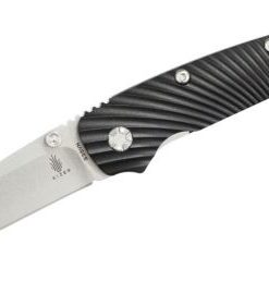 The Kizer Cutlery Ki4419A4 Sliver folding knife is a sleek, lightweight, everyday carry (EDC) knife that’s available at an affordable price. Slim and easy to fit into the busiest schedule, the Sliver is the aide that’s adept at finding the ideal place to stay hidden, appearing at the most opportune times to make the day end on a high note. This particular folder has bright black aluminum handles milled to perfection. The grooves not only make the grip outstanding, they provide a unique design pattern. The frame is slender and easily fits in the pocket with a tip-up pocket clip. The blade, crafted from CPM-S35VN stainless steel, is a stonewashed drop point style. S35VN is a top notch steel with exceptional edge retention and wear resistance. This knife features a liner locking system, thumb studs for one hand opening, spine jimping and a lanyard hole. Kizer’s sleek design is complemented by the first-rate components they use.