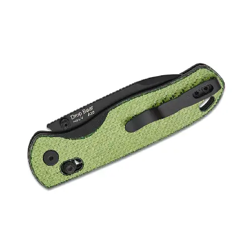 The Kizer Drop Bear features a slim and sleek design while showcasing an aggressive drop-point profile with an intriguing reverse bevel near the tip of the blade. The Nitro-V blade is a workhorse and will perform extraordinarily well in between sparse sharpening sessions. The handles consist of green carbon fiber, known for being waterproof and corrosion-resistant, making it well-suited for use in harsh environments. The blade snaps open with ease thanks to the double thumb studs and bearings, ensuring that the blade is ready the moment you are. The real showstopper here is Kizer‘s Clutch Lock, which is a different take on the familiar crossbar or AXIS lock providing excellent power and ease of use.