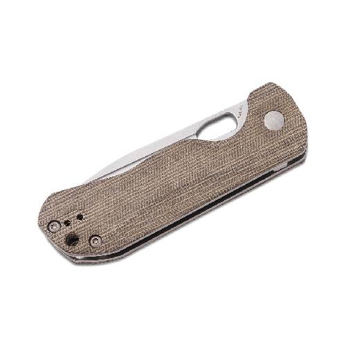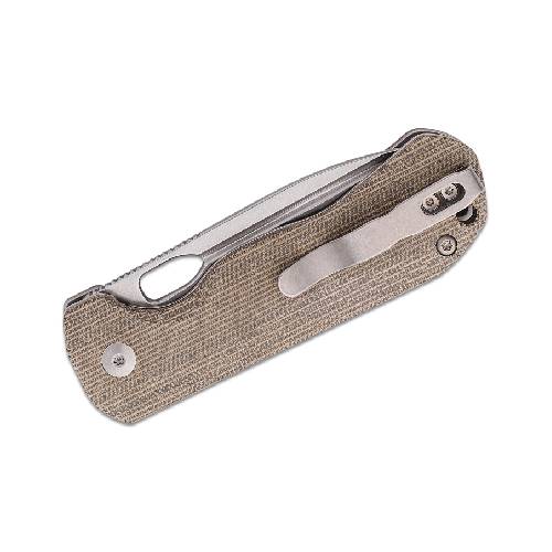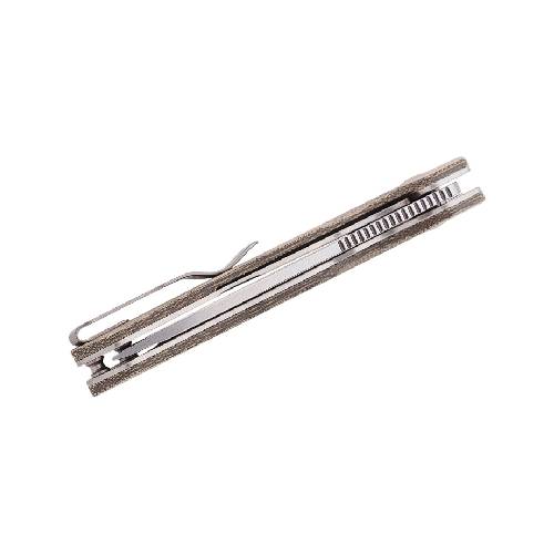 The Bugai is designed by Denis Antimonov for Kizer knives as a lightweight folder with heavy ambitions. The broad blade is made from 154CM stainless steel and has a snub-nosed drop point design that gives a lot of blade to leverage. The blade can be opened two-handed or one-handed with the thumb hole and deploys smoothly with the ceramic bearings in the pivot. A sturdy liner lock is sheathed by Micarta handle scales for a comfortable and weather-resistant grip. The smooth curves and accentuated finger groove of the Bugai make sure that it remains in your grip firmly during use. The Bugai comes with an ambidextrous stainless steel pocket clip.