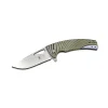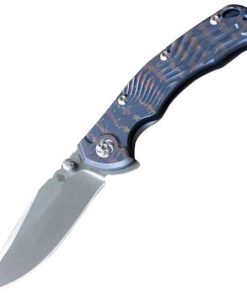 The new Kizer “River Cat” is a design from American Knifemaker Tom Stokes (TomCat Knives). Modern medium-sized folder with full titanium frame and high quality S35VN blade. The slim handle (only 12 mm thick) is made of titanium,with beautiful milled grooves. The pocket clip is made of stainless steel and has only tip-up but left and right options. The blade has a very functional shape, a fine stonewash finish and a hollow grind for excellent slicing potential. Opening the knife is easy and lightning fast with the flipper tap that is designed to not protrude too much, both in closed as openend position. The use of ball bearings gives the blade an extreme smooth action. In spite of the lightweight and slim design, this folder is very robust and capable of all daily urban tasks.