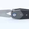 A folding Santoku for the outdoor chef, the Megatherium is a showcase of the “edge below tab” flipper system of Isham’s design. Its wide blade excels at tasks requiring a firm slicing motion and the pseudo-choil allows the user choke-up for delicate tasks. The flipper becomes hidden when the knife is opened for unobstructed optimal performance.
