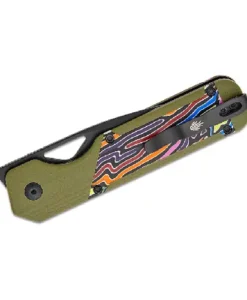 - Handle Material: Contoured Green G10 with Rainbow G10 Inlays