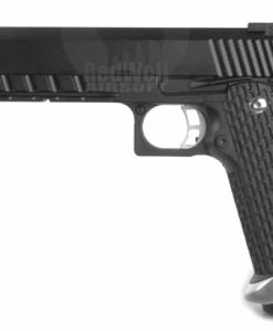 KJ Works’ version of the Hi-Capa comes with a KJ red nozzle installed denoting that it is CO2 ready right out of the box. The slide and frame are full metal and powder coated in a nice jet-black color.